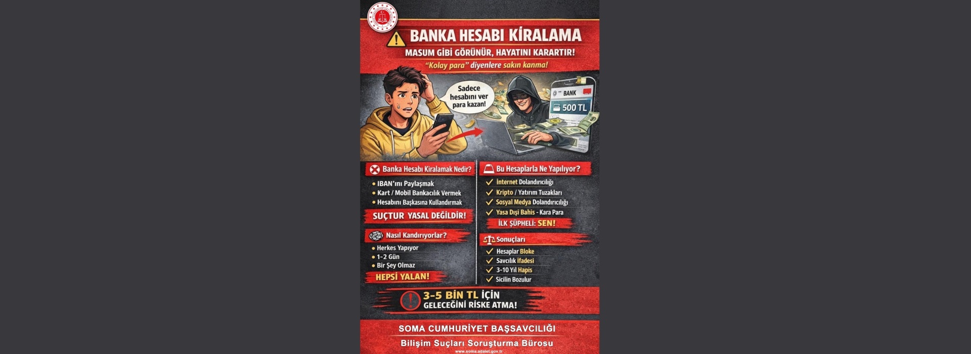 Soma Cumhuriyet Başsavcılığı Bilişim Suçları Soruşturma Büromuzca ilçemizdeki kamu kurum ve kuruluşları ile gerçekleştirilecek olan faaliyetler konusunda planlamalar yapılmış, gençlerin suça sürüklenmesinin önlenmesi, dijital alandaki risklere karşı bilinç düzeyinin artırılması ve yargıya duyulan güvenin korunması hedeflenmiştir.