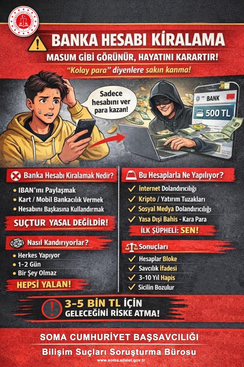 Soma Cumhuriyet Başsavcılığı Bilişim Suçları Soruşturma Büromuzca ilçemizdeki kamu kurum ve kuruluşları ile gerçekleştirilecek olan faaliyetler konusunda planlamalar yapılmış, gençlerin suça sürüklenmesinin önlenmesi, dijital alandaki risklere karşı bilinç düzeyinin artırılması ve yargıya duyulan güvenin korunması hedeflenmiştir.