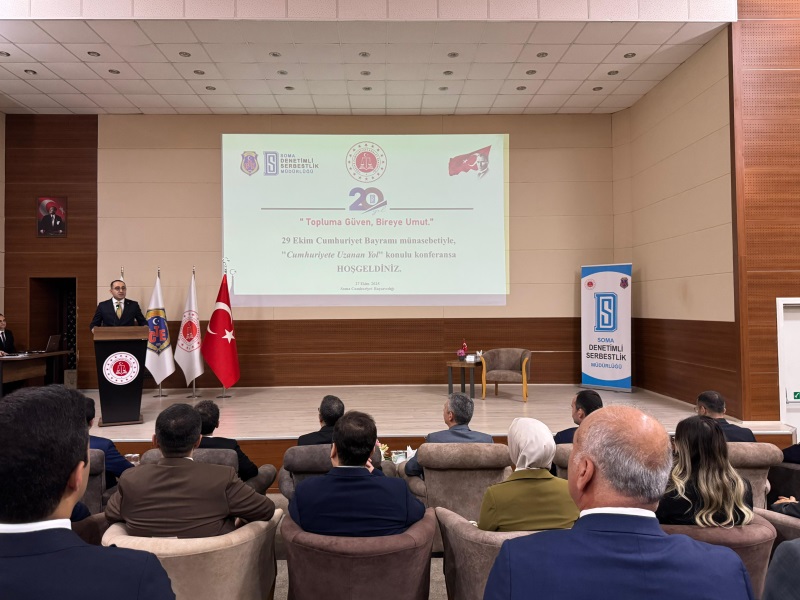 29 Ekim Cumhuriyet Bayramı münasebetiyle, Soma Denetimli Serbestlik Müdürlüğümüzce 27 Ekim 2025 tarihinde Manisa Celal Bayar Üniversitesi Öğr. Gör. Dr. Sn. Veysel HASAR'ın konuşmacı olduğu "Cumhuriyete Uzanan Yol" konulu konferans düzenlendi.