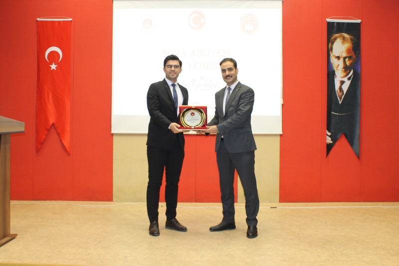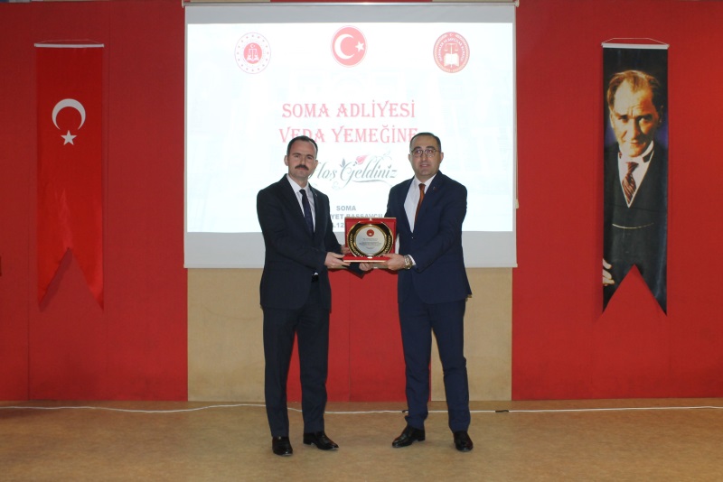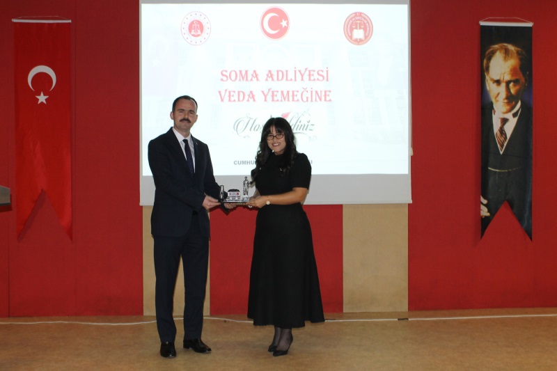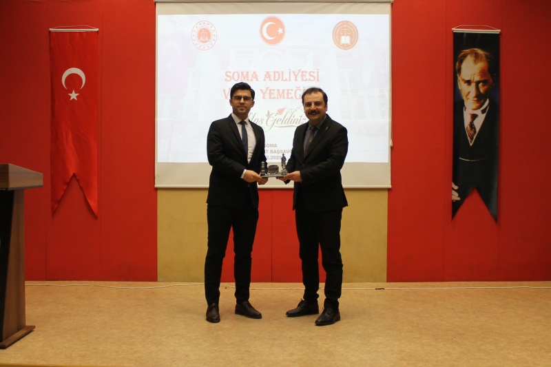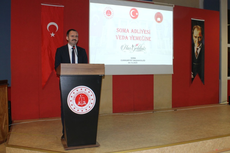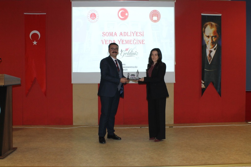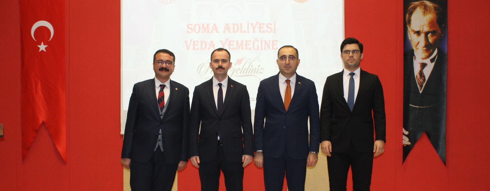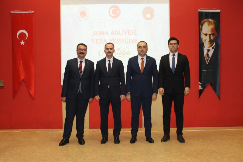Hâkimler ve Savcılar Kurulu Birinci Dairesinin 27.11.2025 Tarihli 2029 ve 2030 Sayılı Adli Yargı Atama ve Müstemir Yetki Kararnamesi ile tayin olan Adalet Komisyonu Başkanımız ve Hâkimlerimiz için; 04.12.2025 günü gerçekleştirilen plaket töreni ve veda yemeği programına, Cumhuriyet Başsavcımız Sn. Fatih Mehmet VİDİNEL, Adalet Komisyonu Başkanımız Sn. Muhammed İkbal ÇELİK, Soma Adliyesinde ve mülhakatımız Kırkağaç Adliyesinde görevli Hâkim, Cumhuriyet Savcısı ve personellerimiz ile aileleri katıldılar.
